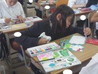 2組は図工でホワイトボード伝言板を作っています。糸のこで形を作って、色を塗って...