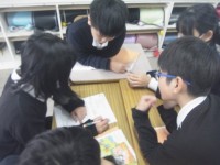 1組は社会で日本の工業生産と外国とのかかわりについて学習していました。2組は外...