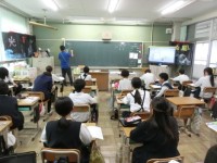 1時間めの授業の様子です。1組は算数、2組は外国語の学習をしていました。