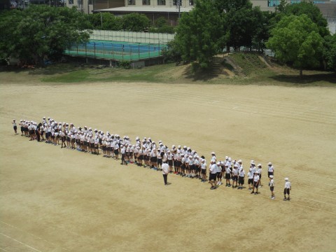 3・4時間目は、5・6年生が運動場を使って体育大会の練習をしています。声もよく出ていて、気合が入っていますね。