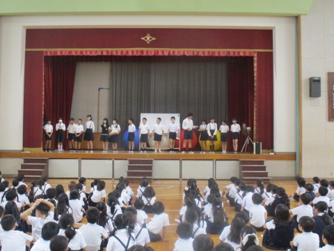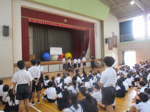 10月に入って涼しくなってきたので、久しぶりに体育館で朝会をしました。