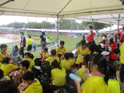 午前中は、雨が降っている時間帯があったので、お弁当はテントの下で食べました。