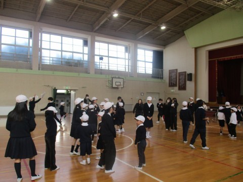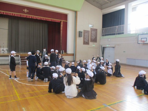 6年生が考えた遊びを,今日は1年1組といっしょに体育館で遊びをとおして交流しました。今回も,6年生らしく1年生に教えてあげ,楽しく交流することができました。