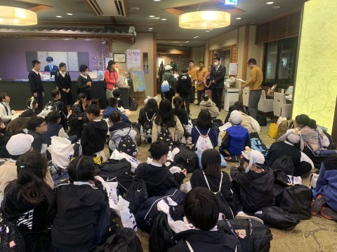 ホテルに到着しました。入館式をして、各部屋へ移動します。