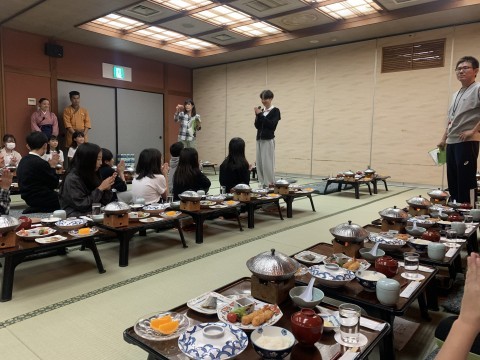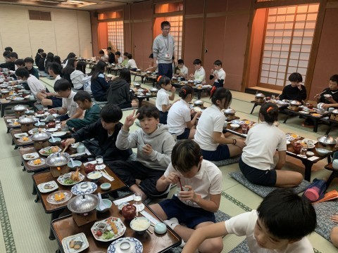 夕食の時間になりました。部屋ごとに並んでの食事です。