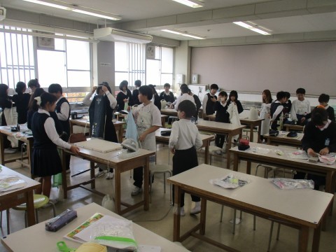 5年1組は,家庭科の授業でエプロンを製作していました。マイエプロン,完成に向けてがんばっていました。