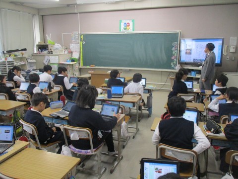 4年2組は,自分が調べた地域の魅力について,タブレットを使ってまとめる学習をしていました。読み手を引き付けるにはどう書いたらいいか考えていました。