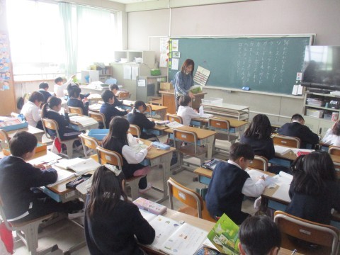 1年2組は国語でカタカナの言葉集めをしていました。「キャンプ」「ティッシュ」など身の回りにあるカタカナの言葉をたくさん見つけることができました。