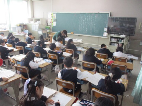 1年2組は,国語で「どんなおはなしができるかな」の学習をしていました。はじめ・中・おわりにわけてお話を考えていました。