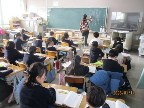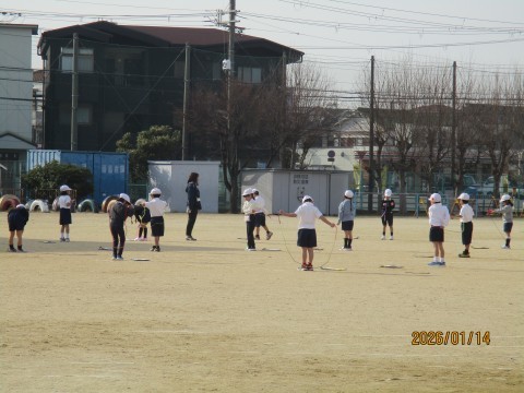 1月15日 1年生 学習の様子 公開日 2026/01/15 更新日 2026/01/15 6年生 1年1組は国語「どうぶつの赤ちゃん」の学習をしていました。みんなでこのお話の問いを見つけ,ノートに書いていました。1年2組は体育で「なわとび」をしていました。縄の回し方,まえとびの仕方を確かめて,練習していました。