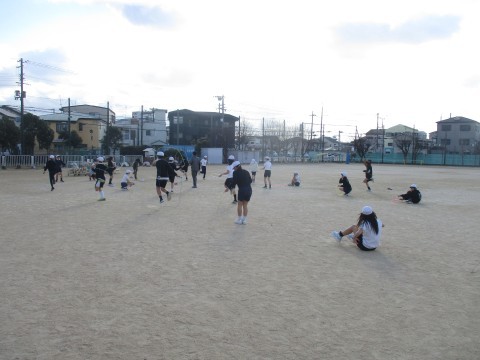 6年生は体育の授業で,なわとびとサッカーの試合に向けた練習を行いました。班でパス練習をしたり,ボールで的にあてる練習をしたりしてがんばっていました。