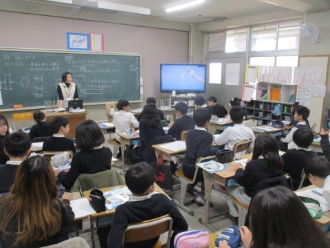 5年生は理科で,「もののとけかた」の学習をしていました。メスシリンダーの読み方や,学習したことを動画で確認していました。