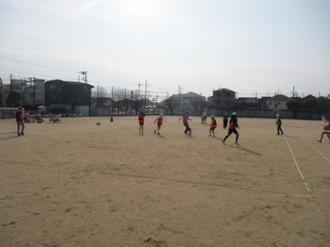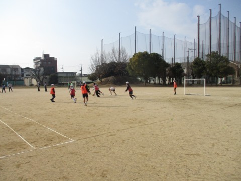 6年生は,体育の学習でチームに分かれてサッカーの試合を行いました。パスをうまく回しながら得点につなげていました。3試合を行うことができました。