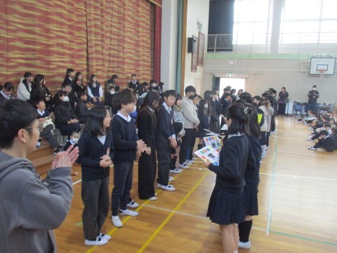3月6日 お別れ集会 公開日 2026/03/06 更新日 2026/03/06 6年生 体育館で6年生とのお別れ集会を行いました。2年生から5年生までの児童が集まり、これまで学校のリーダーとして活躍してくれた6年生に、感謝の気持ちを伝えました。 +1
