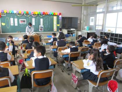となりのクラスは,自分が何号車の列か決めています。先生が呼んだ号車の子が,しっかりと手を挙げていました。