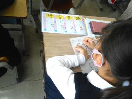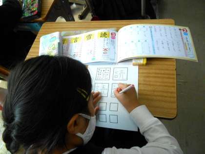 マス目の使い方を習って、バランスの良い字になるように、一画一画ていねいに書いていきます。