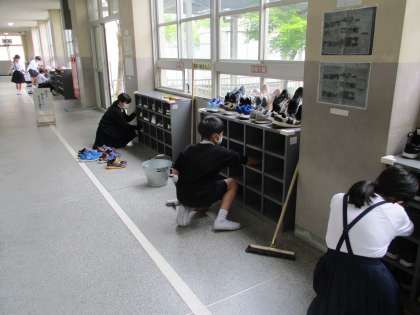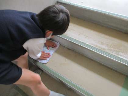 始まりました,清掃活動 公開日 2021/04/13 更新日 2021/04/13 校長室より 給食開始にともなって,清掃活動も今日から本格的に始まりました。 階段や靴箱など,多くの人が使う箇所のそうじを,ていねいに取り組んでくれています。