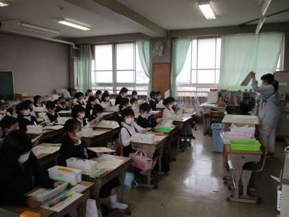 4年 色づくり名人になろう 公開日 2021/04/13 更新日 2021/04/13 4年生 パレットの使い方です。 運動場と呼ばれる,色をまぜる場所と,絵の具をそれぞれ出す場所。 筆を洗う,水入れも,だんだんときれいな水になるように,最初に洗う場所など決めて使います。 今日は,一番すきな色をひとつ出して,ぬってみましょう, 先生からの声掛けで,みんな塗っていました。