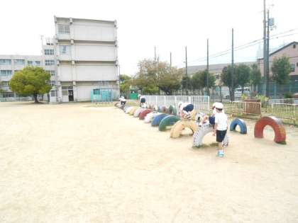 2年生初めての体育は、道具を使う運動でサーキット運動をしました。