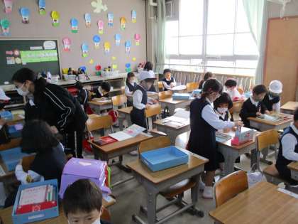 朝の準備も慣れてきて,教室ではランドセルを片付けて本読みをしている子もいます。