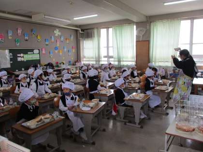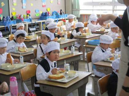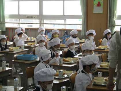 はじめてのきゅうしょく 公開日 2021/04/15 更新日 2021/04/15 1年生 今日から給食がはじまりました。 今日の献立は,ポークシチューです。 大きいおかず,小さいおかず 目の前には,はじめてのきゅうしょくがならんでいます。 給食にはいろいろなきまりがあって,先生から聞いています。 ごいっしょに「いただきます。」