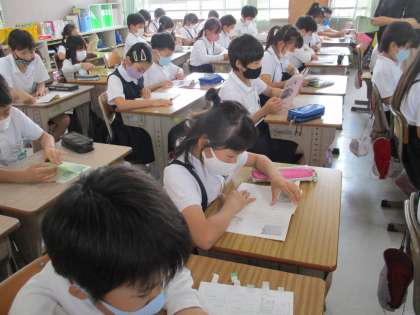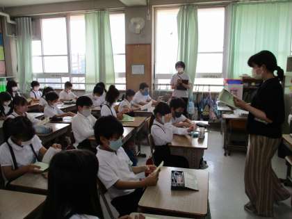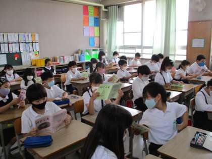 浜寺東の4年生が「はとぶえ」を配ってもらって,いままでの掲載された作品を読んでみました。