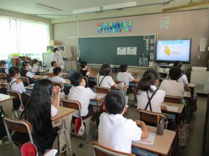 5年2組が全国小学生歯みがき大会に参加しました。DVDを見ながら,むし歯についてや歯肉炎について,正しい歯のみがき方,デンタルフロスの使い方を学習しました。今年度は感染予防のため,実際に歯をみがく実習はありませんでした。大会からいただいたハブラシやデンタルフロス,保護者向けのお手紙を持ち帰っています。お家で活用してください。明日は5年3組が参加します。