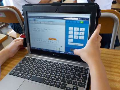 教室の自分のパソコンを使って,ドリルパークをしています。