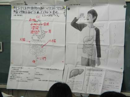 口から入った食べ物が,便となって体外へ排出されるまでの色の変化を,書き取っていました。