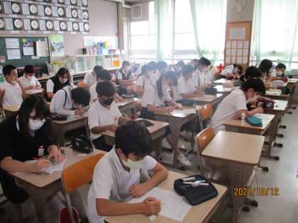 1組は,土曜日に行われた「体育参観」での団体演技のふりかえりをシートに書いています。