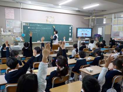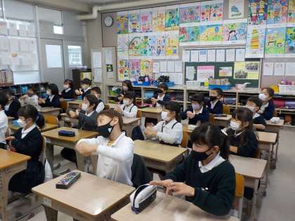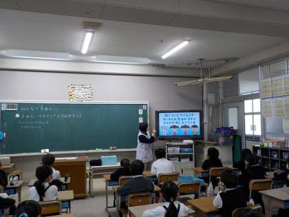 まずは,教室で話を聞いて,洗い方を練習しました。