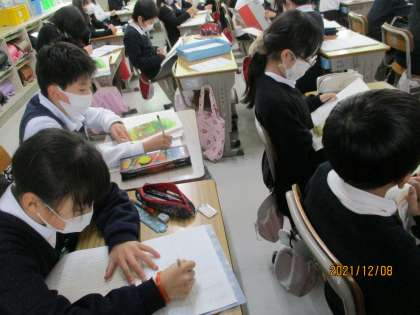 国語の学習で,今日は物語の中から「いつ」と「大きな出来事」にわけて,設定をみんなで考えています。