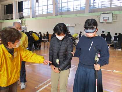 堺市社会福祉協議会の協力のもと,キャップハンディ体験を行いました。