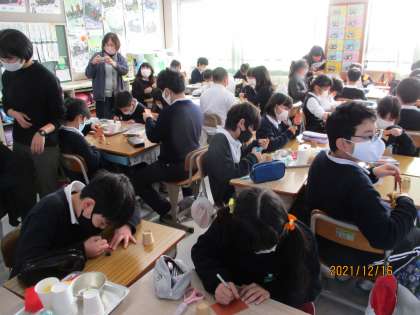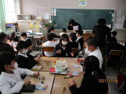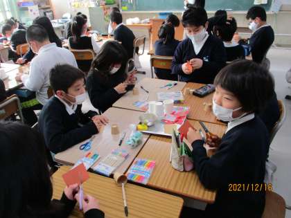 みんなで班に分かれて,そらまめのお友だちが一人ずつ入って,トナカイを作りました。