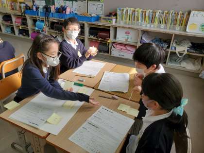 司会係と記録係を決めて,スムーズな話し合いができるように頑張っています。
