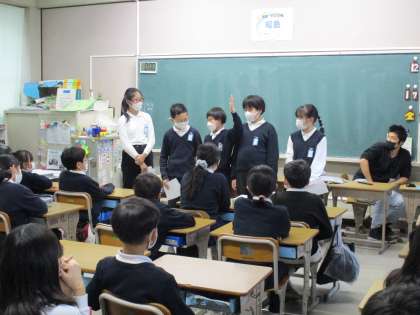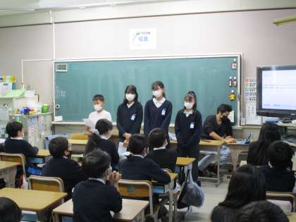 グループでパワーポイントを使って、臨海での活動をまとめました。今日は、4年生の教室に行って報告しました。