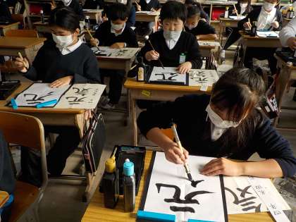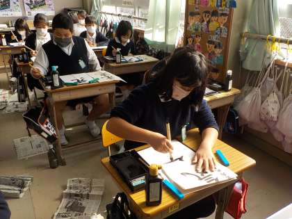 今年最後の習字の時間。