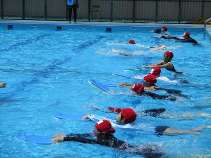 今日はどの程度泳ぐことができるか,ビート板を使って,キックの足を確かめたり,息継ぎの確認をしたり,何度も繰り返していました。