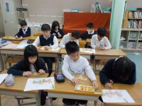 先生からしおりのワークシートをもらって,自分たちで書き込みます。