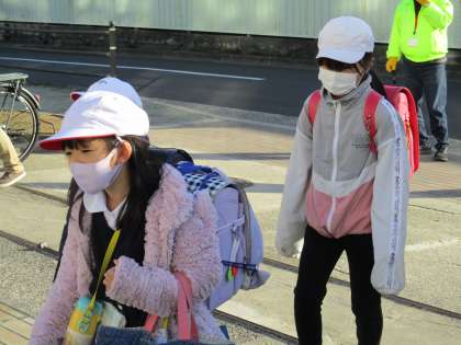 楽しそうに,門を通っていきます。担任の先生や友だちと,いっぱいお話をしてね。