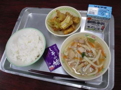 「かやくうどん」とごはんには「ゆかり」が付いています。