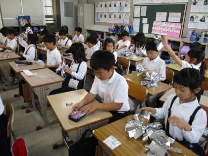 クラスによって、色が違うので、おうちの人からよくわかりますね。