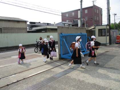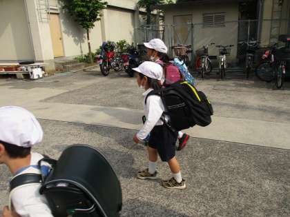 給食袋や上靴に水筒。荷物が多いので、大変です。