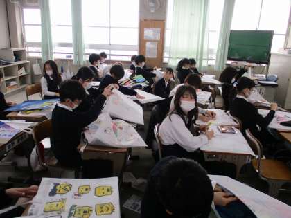 作品袋には、5年生の思い出や、好きなキャラクターを描きました。