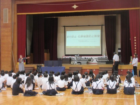 堺青少年サポートセンターの方が来られ,非行防止・犯罪被害防止のお話を聞きました。