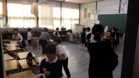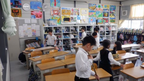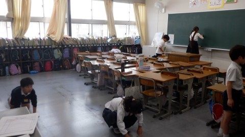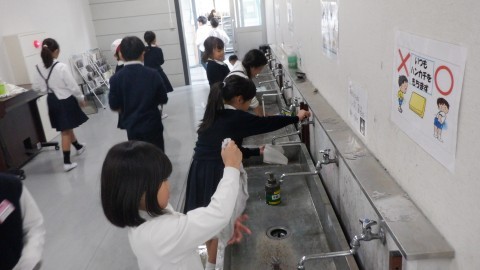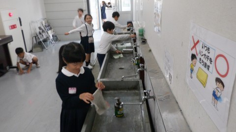 1~3年の掃除の様子です。水道で雑巾を洗う人,水道をきれいにする人,特に頑張っていました!