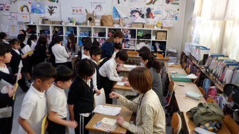 今日は地域の赤ペン先生の皆さんに来ていただき,1~5の段の九九を聞いてもらいました。