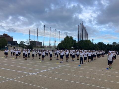 1〜3年生の堺っ子体操、1〜3年生の徒競走と1年生ダンスの様子です。