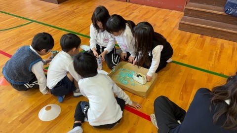 緊張しながらも説明の紙を大きな声で読む子,遊び方が難しそうな子にそっと手を差し伸べる子など,