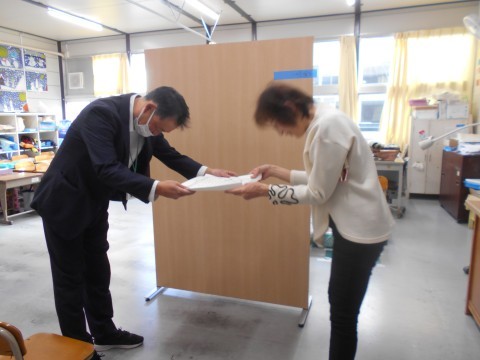 学校歯科医の藤田先生が,永年勤続表彰30年にあたり表彰を受け,感謝状を授与されました。